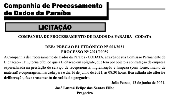 Adiamento de Licitação