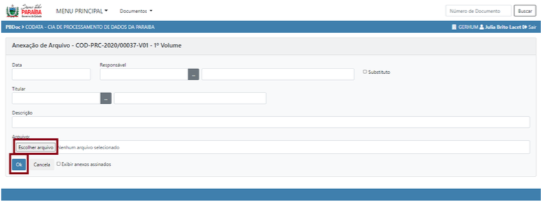 3.1 Anexar Documento escolher arquivo