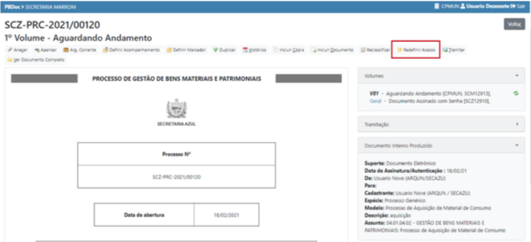 6.2 Redefinir Acesso botão