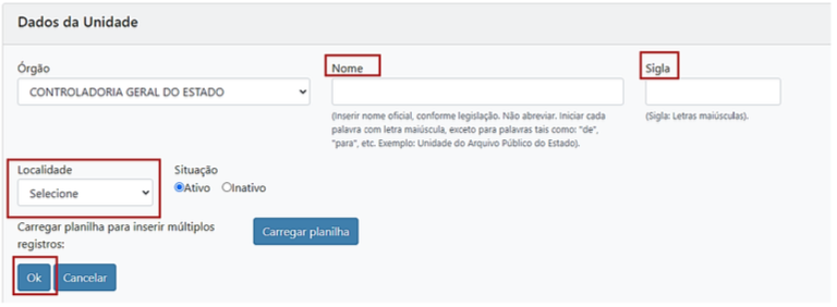 7.2 Cadastro de Unidade selecione
