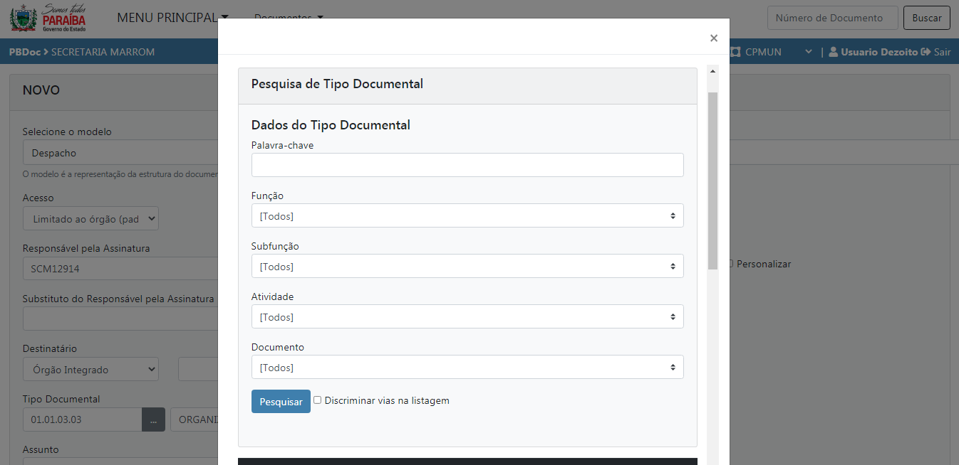 2.2 Seleção de tipo documental
